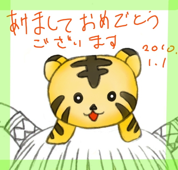 途中までの年賀状のトラさん載せてみました。